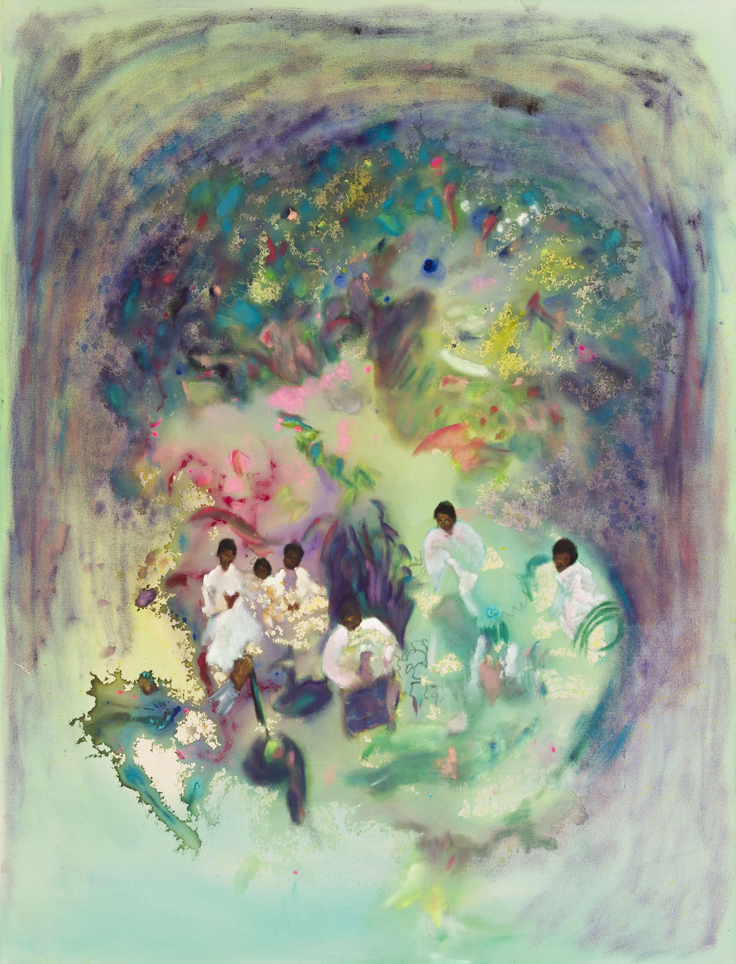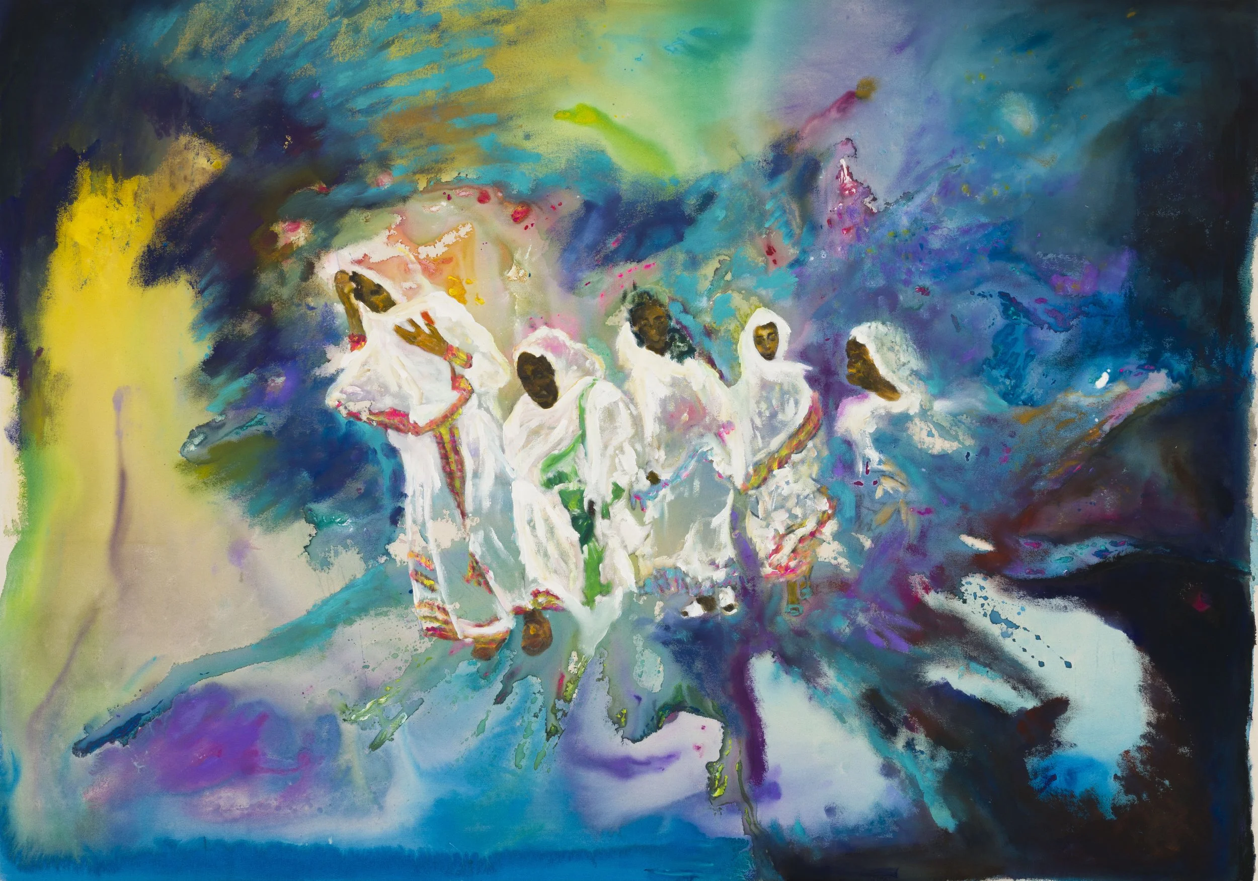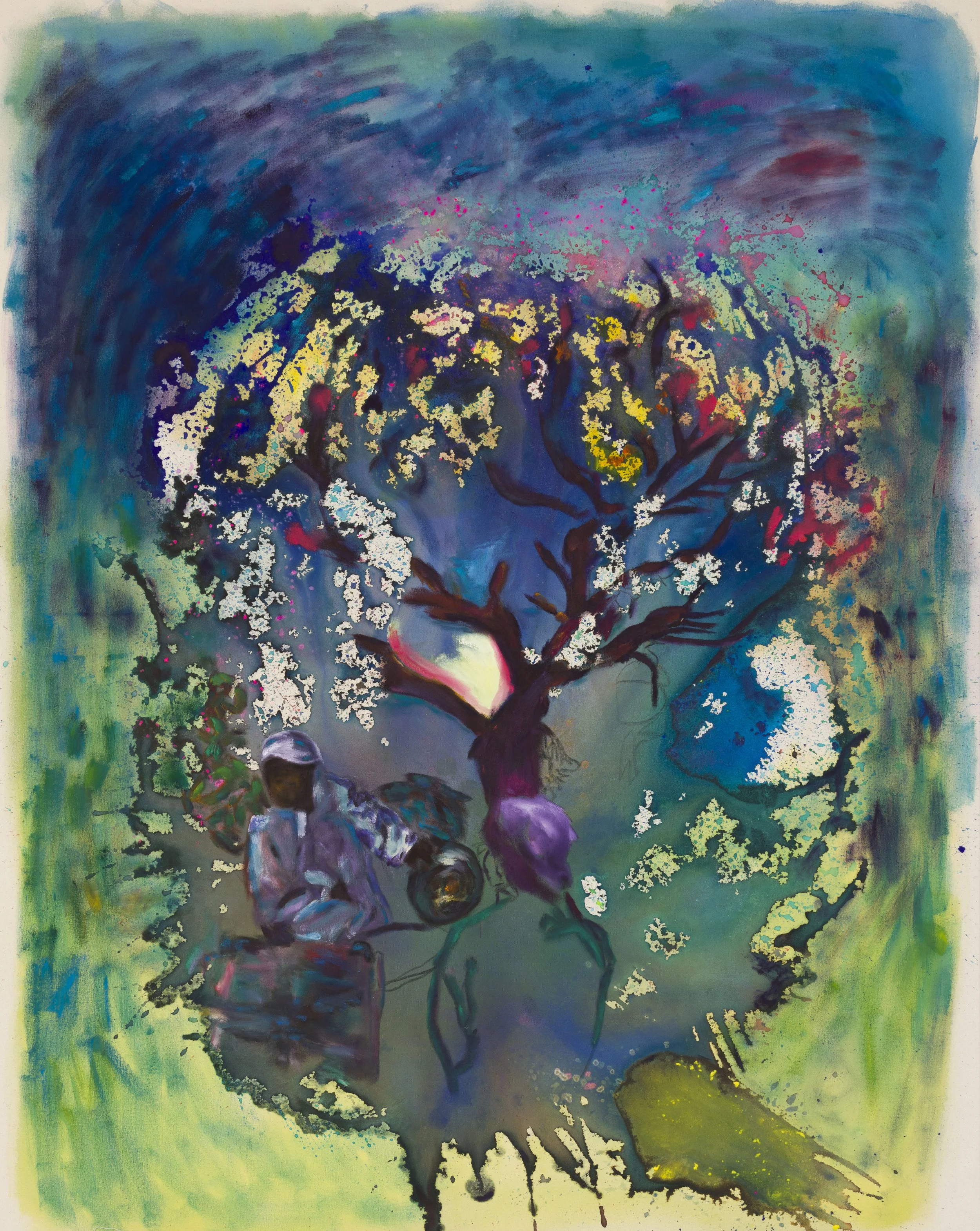 Emerging from research into ancestral ecologies and the Baobab tree as a cultural axis, this body of work reflects on the spiritual architecture of belonging and resilience. Colour and form move like breath between root and cosmos.